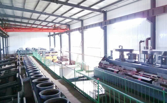 該項目分兩條生產(chǎn)線,第一條為2000t/d,第二條為1000t/d。破碎采用三段一閉路流程,浮選采用9磨11選,浮選精礦品位達到95%以上,浮選精礦經(jīng)刨刀卸料離心機脫水后經(jīng)過烘干機烘干,然后經(jīng)過分目篩分成不同尺寸,然后進行銷售。