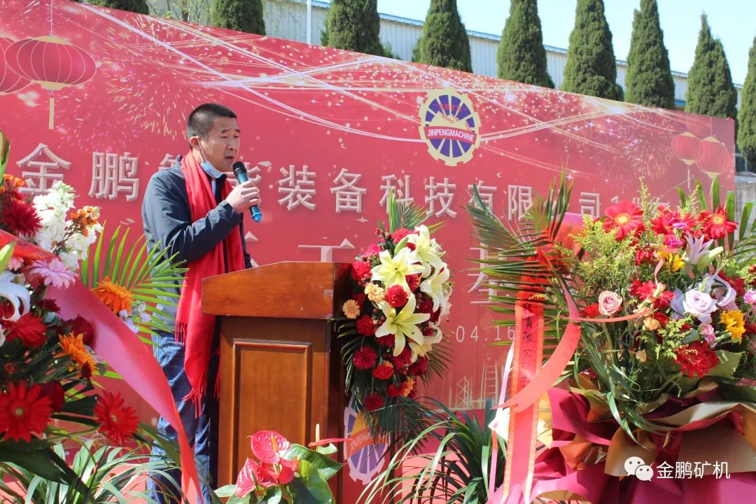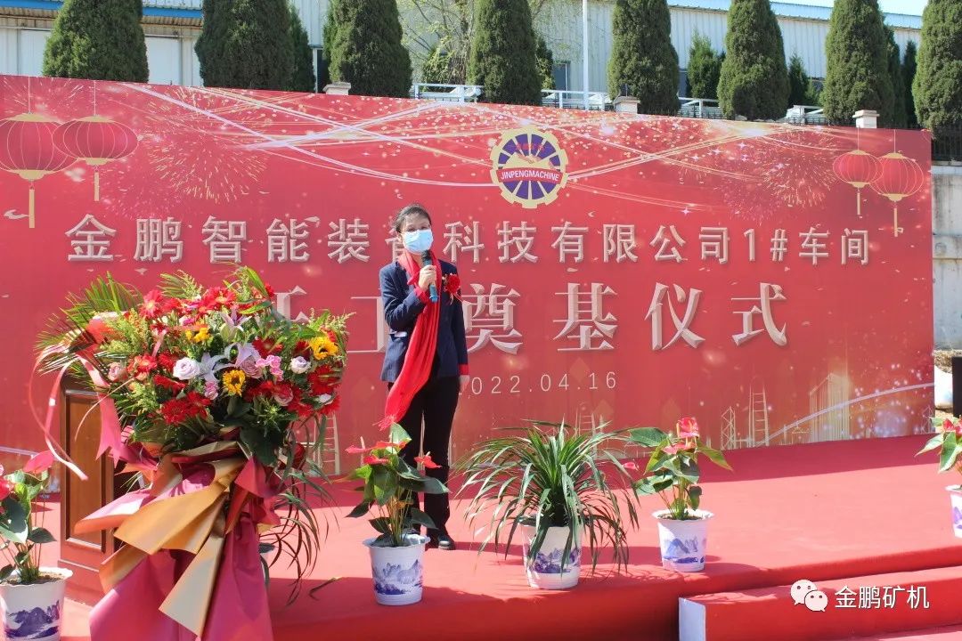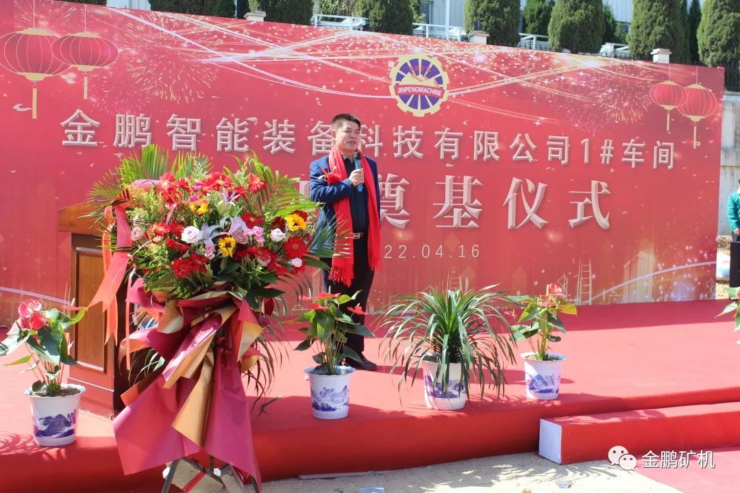 人間四月,不負(fù)期待。2022年4月16日上午,煙臺金鵬智能裝備科技有限公司1#廠房開工奠基儀式隆重舉行。煙臺金鵬礦業(yè)機械有限公司董事長于建環(huán),總經(jīng)理許慶硯,山東普萊恩工程設(shè)計有限公司劉忠國,元亨工程咨詢集團有限公司蓋淑君,山東廣源集團有限公司總經(jīng)理管軍,以及各界代表、金鵬員工等數(shù)百人參加開工儀式。