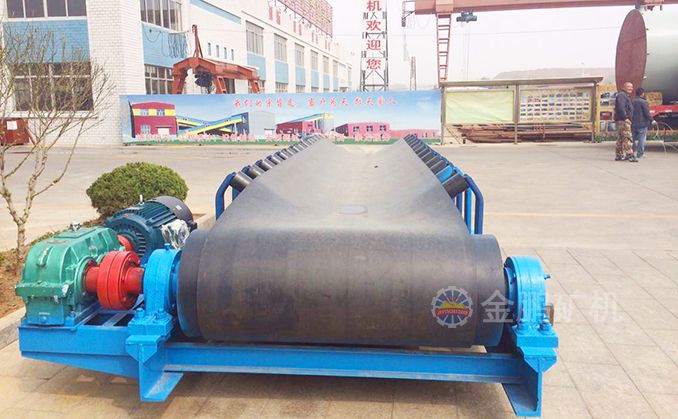 物料通過給礦漏斗給到皮帶給礦機(jī)帶面上,隨著交流調(diào)速電機(jī)的轉(zhuǎn)動,膠帶緩慢向前移動,帶面上的物料經(jīng)首輪給入下道工序,實現(xiàn)連續(xù)給料。