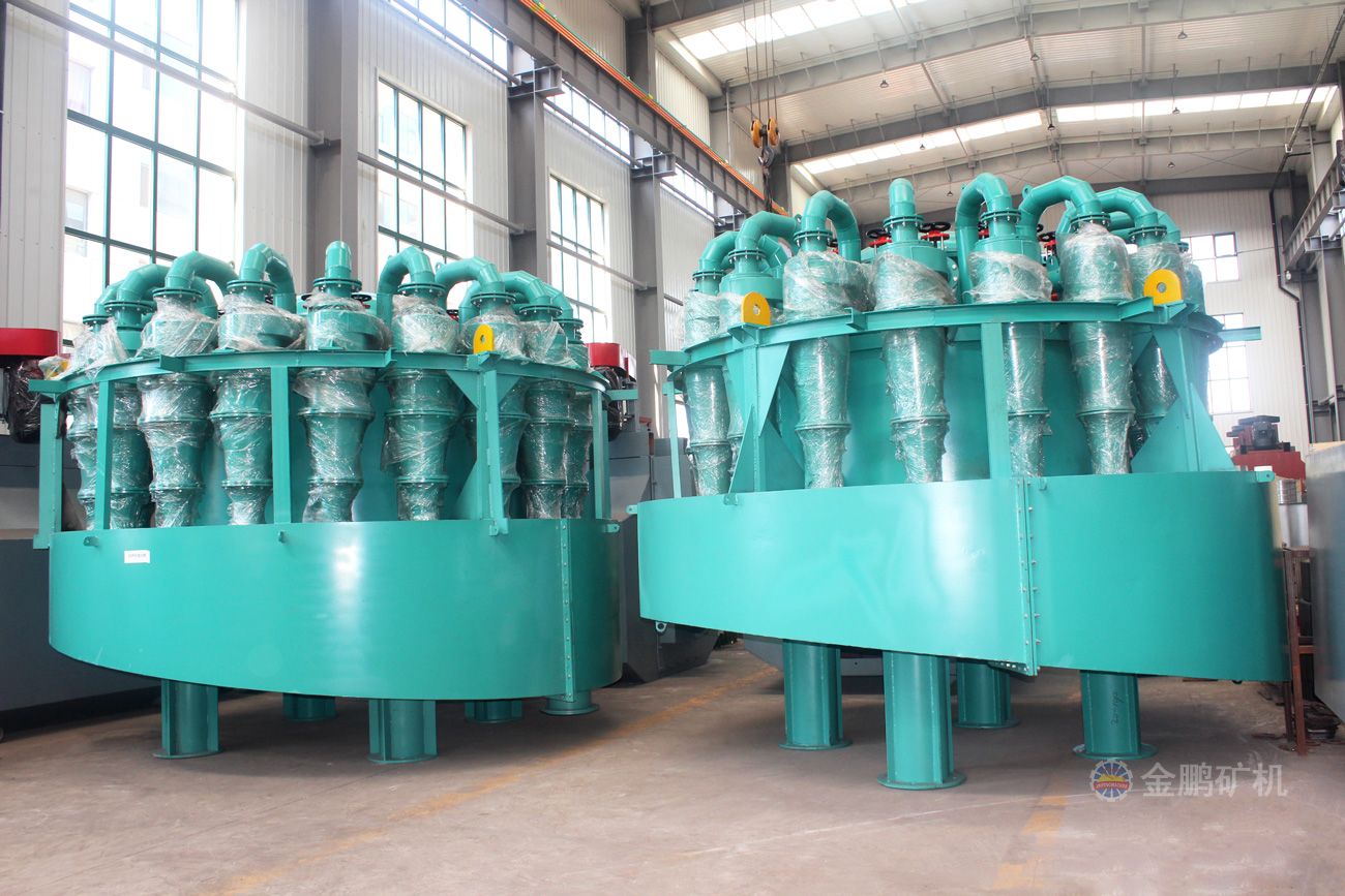 旋流器組能夠滿(mǎn)足大型礦山的礦量需求,我公司可為用戶(hù)定制旋流器組,根據(jù)不同的給礦粒度、底流濃度和生產(chǎn)量等對(duì)旋流器進(jìn)行選型并確定旋流器數(shù)量,其分級(jí)效率比螺旋分級(jí)機(jī)高20-30%,可達(dá)到70-85%。